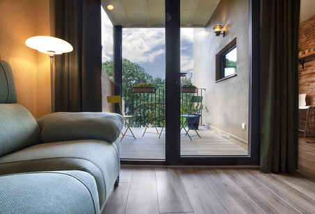 Miró es uno de nuestros estudios de 40m2, 2 pax, con cocina independiente y vistas a la cooperativa vinícola y a las montañas.